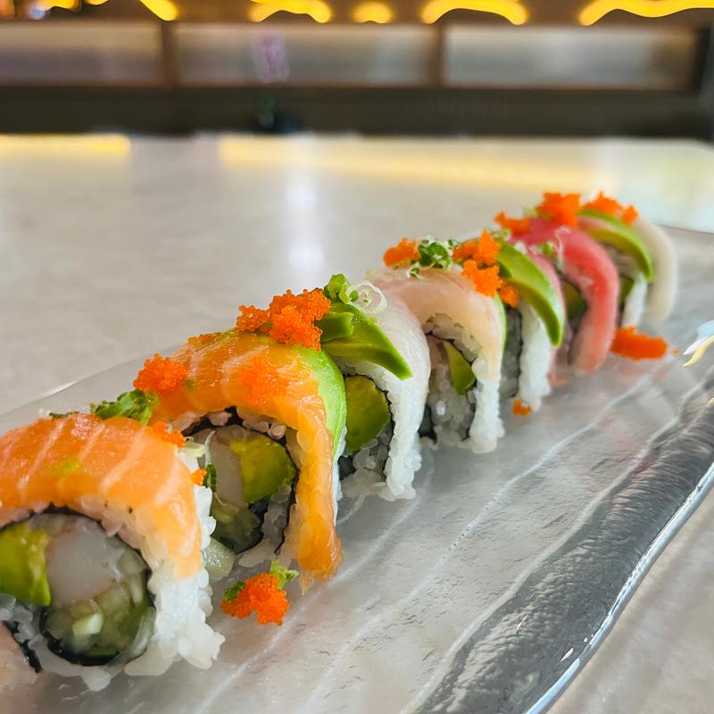 Outside: Avocado, baked spicy scallop, crunch, caviar & scallion, with eel sauce.
